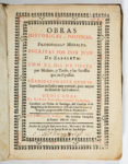 ff, 516 pp, 1 f), plein velin souple de l'époque, traces de lacets, petit accident à l’angle inférieur. Signatures anciennes sur le feuillet de garde : Ncs Doctori 1696, et Prideaux 1824. Quarta impresion (con) un Indice muy ponctual, para mayor facilidad de los Lectores. Elle contient : Theatro del hombre, el hombre ; problemas morales ; Errores Celebrados; El Dia de Fiesta ; El Emperador Commodo ; Milagros de los trabajos ; Historia de Nuestra Señora de Madrid. Ticknor : « il nous donne la peinture satirique et gracieuse des moeurs de la capitale, dans ces moments où l'oisiveté porte le peuple dans les rues et sur les places où il y a des amusements » Décadence du "Siècle d'Or" dans la dernière moitié du XVIIème siècle, accompagnée d'un déclin général dans les Arts, et d'une dégradation progressive de la monarchie (le règne de Philippe IV). Palau, 378545. Salva, 2034 : impresion y papel tan malos como los de la segunda edicion (la première date de 1667).