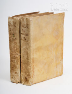 GRACIAN Y MORALES (Lorenzo). OBRAS. Barcelona, Maria Angela Marti y Gali viuda, 1757. Deux volumes en deux tomes in-4 (4 ff, 532 pp, 6 ff // 4 ff, 576, 4 ff), plein velin souple (Reliure espagnole de l'époque). Bon exemplaire malgré quelques...