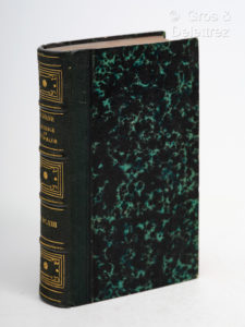 561 pp, 20 ff de table), plein maroquin cerise, dos à nerfs orné de caissons dorés, encadrements sur les plats, filet sur les coupes, tranches dorées (Reliure signée Muller). Bel exemplaire. Quatrième édition de "la mise en français" par Gabriel Chappuys, Tourangeau. Rare traduction du texte espagnol Jardin de flores curiosas. C'est un pot-pourri d'aperçus philosophiques, théologiques, géographiques et d'autres curiosités (fantômes, visions, esprits). Dans le chapitre VI de la première partie lorsqu'il fait le tri de la bibliothèque de Don Quichotte, le curé déclare : « fue el mesmo que compuso à Jardin de Flores, y en verdad que no sepa determinar qual de los dos libros es mas verdadero, o por decir, menor menos mentiroso » Palau, 334920 ; Brunet V, 886. Salva n'avait pas cette traduction. Cf Biblio de Jean Marc Dechaud. Ex-libris de Rolando A. Laguarda Trias. Signature ancienne in fine de la table : Paniquiny (?).
