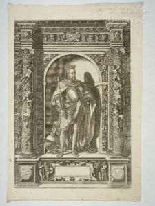 Cochin gravées par Surrugue, Cochin, Ravenet dont quatre sont encadrées. Vers 1714, Coypel fut chargé de créer 28 cartons pour produire une série de tapisseries sur Don Quichotte. Tissées par la manufactures des Gobelins, certaines se trouvent actuellement dans les collections du musée Getty, au Château de Compiègne, et dans diverses collections publiques (Aix-en-Provence) et privées. Les originaux, sauf trois furent copiés et gravés à plusieurs reprises pour en illustrer de nombreuses éditions au XVIII ème siècle en France et en Europe. Nous joignons une belle Eau-Forte de la "Barque enchantée" (37, 5 cm x 30 cm) dessinée par Ricar et gravée par Antoine Radigues (1721-1808). Cette planche à l'eau-forte et au burin a été éditée par Jacques Chéreau (1690-1750). Il s'agit d'un "suiveur" de Coypel.