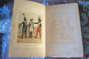 France, par un membre de la Sabretache. Paris, Henri Vivien, 1900. in8 pleine toile couv., conservée, VII-562 pages, 3 planches gravées coloriées (sur 4) et un frontispice illustré par JOB. Cet ouvrage sert de biblio-iconographie du costume militaire français. Colas : 1258.