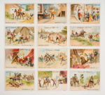 [D'APRES CERVANTES]. DON QUICHOTTE. [Paris ?], [Chocolat Kohler], [1910 ?]. Suite complète de douze cartes (7, 5 cm x 11 cm) en chromolithographies relatant les principales aventures de Don Quichotte. Excellent état. Une fois de plus Don Quichotte...