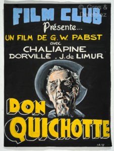 son Don Quichotte en 1932 avec Feodor Chaliapine dans le rôle-titre et Dorville dans celui de Sancho. Un chef-d’œuvre inégalé ! (ON JOINT) une maquette d’affiche originale (48*60cm) du Don Quichote de Pabst datée et signée par André Ruelan, technique mixte (A. R. 57).