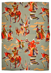 D'APRES CERVANTES. Don Quichotte et divers personnages face à un moulin. [Tourcoing], s. e. , [1945]. Maquette aquarellée avec des indications de modifications de couleurs. 55, 5 cm x 78 cm. Il s'agit peut-être du projet d'un carton de tapisserie....