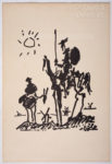 PICASSO. Don Quichotte chevauchant en compagnie de Sancho. (Paris?) Edition «Combat pour la Paix. 1955» (le 10 mars.) Grande lithographie encadrée de 54, 5cm x 37cm. Elle est signée dans la planche. Quelques piqûres. Elle est tirée sur papier...