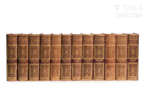 SALVAT. DICCIONARIO ENCICLOPEDICO. Barcelona, Madrid Salvat Editores, 1950. Douze tomes en dix volumes in-4°, demi-chagrin maroquiné à coins havane, dos lisses ornés d’entrelacs dorés (Reliures d’éditeur). Frottements, coins usés. Seconde...