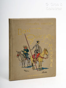 ILLUSTRATIONS D'HENRY MORIN CERVANTES SAAVEDRA (Michel). DON QUICHOTTE DE LA MANCHE. Paris, Henri Laurens, [1900 ?]. Un volume in-4, pleine percaline illustrée de l'éditeur, tranches dorées. 3ff, 144 pp. Très belle publication. Edition pour la...