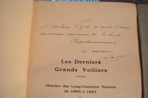 Lacroix (Louis) - Les derniers grands voiliers Peyronnet, 1937. In8 broché, couv. Illustrée 510 pp., carte dépliante, nombreuses photographies avec un long envoi de l'auteur à Mme Vigies. On y joint Lacroix (Louis) - Les Écraseurs de crabes sur...