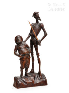 a un geste protecteur à l'égard de Sancho. Il pose sa main droite sur son épaule. Très beau travail espagnol non signé.