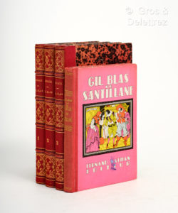 LE SAGE. Gil Blas Paris, Pourrat 1832. 3 volumes in-8° demi-chagrin rouge de l’époque. Très bel exemplaire. Inconnu de Palau. Cf la préface : " jusqu'ici la seule qui soit conforme au texte pur de 1747. On y trouvera des phrases entières...