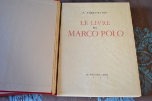 T'serstevens (A.) Le Livre de Marco Polo J. Susse, 1944. In4 broché, couverture, chemise et étui éditeur. Illustrations en couleurs, dont une carte repliée. un des exemplaires sur vélin de Rives. Bel exemplaire.