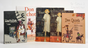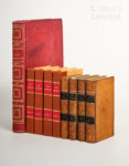 intérieur). Rius, 670/524 : 24 gravures de Ch. Heat d'après Westall ; bastante buenas, frontispices et carte. Palau, 52776 : las laminas dibujadas por Deveria, nueva traduction de Delaunay. 2)-DON QUICHOTTE. Traduit par de Grandmaison y Bruno. Paris, bureau de la bibliothèque des collèges, 1832. 4 vol. ln-16 demi veau brun, dos lisse (Reliure moderne d'amateur) exemplaire non rogné, couvertures jaunes conservées. Imprimé à Bourges. Edition illustrée d'un portrait. Henrich, 322 ; Rius, 538 ; Palau, 52791 : Mas que una nueva traduccion es un arreglo de la novela immortal y tantas son las susupresiones y pasajes abreviados. 3)-DON QUICHOTTE. Traduction nouvelle. Illustré de 28 grandes lithographies. Paris, Louis Janet, Magnin, Blanchard et Cie. (1862) 1 volume in-4°, plein chagrin rouge de l'époque, dos à nerfs orné de caissons dorés. Reliure frottée, coif. sup. us. Coins émoussés, tranches dorées. Bon état intérieur. Ouvrage rare illustré de 28 lithographies hors-texte en couleurs. Traduction française retouchée et abrégée par Filleau de Saint-Martin. La plupart des bibliographies ne signalent pas de lithographies en couleurs. Gumuchian, 1533. Vicaire II, 159. Palau, 52849. Rius, 577. Henrich, 361.