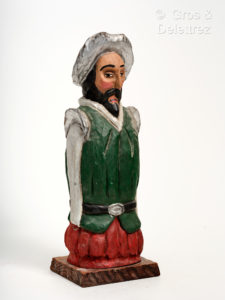 gros fermoirs. Le dos porte le titre du roman et le nom de son auteur. Les plats suggèrent Don Quichotte et Sancho Pança dans un paysage apocalyptique. Véritable vision irréelle, quasi aquatique ! Nous sommes dans un autre monde. Cette céramique contemporaine est signée CV (Claire Vincent).