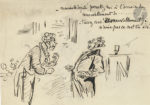 Amédée-Charles-Henri, comte de Noé, dit CHAM (1819-1879). 2 dessins à la plume avec légendes autographes ; 13 x 15 et 10,5 x 15 cm.{CR}« Promenade carnavalesque des hippophages » ; dialogue entre un député et un huissier.