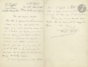 Gustave EIFFEL (1832-1923). L.A.S., Les Petites Dalles 28 août 1885, à M. Mulot ; 1 page et demie in-8 à son en-tête G. Eiffel, Constructions Métalliques, Levallois-Perret près Paris.{CR}Il le remercie de l’informer de l’obtention de...