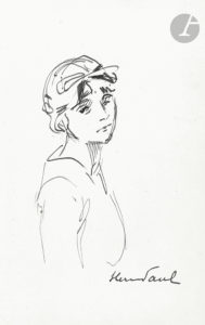 HERMANN-PAUL (1864-1940). Dessin à la plume, signé en bas à droite ; 18 x 12 cm.{CR}Portrait de femme en buste.