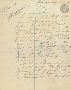 Paul BERT (1833-1886). Manuscrit autographe signé, [1880] ; 16 pages in-4.{CR}Important article sur le grand chirurgien Paul BROCA (1824-1880), qui vient de décéder, publié dans La République Française du 11 juillet 1880 (coupure de presse...