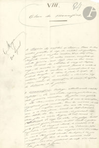 Jean-Henri FABRE (1823-1915). Manuscrit autographe, Classe des mammifères ; 5 pages et demie in-fol.{CR}Chapitre complet destiné à un manuel de Zoologie, étudiant successivement : division des vertébrés en classes ; pelage, allaitement,...