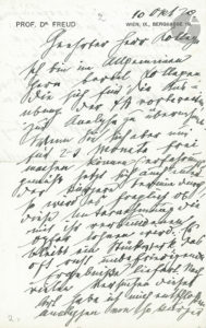se préparant à exercer la psychanalyse. Mais si le collègue ne peut se libérer que pour 2 ou 3 mois, Freud craint que cela n’en vaille pas la peine. Ce ne serait qu’un travail incomplet, avec des résultats insatisfaisants. Après plusieurs expériences, il a décidé de ne plus faire d’analyses de si courte durée. Il conseille d’entreprendre plutôt une analyse fractionnée à Berlin, où on a le choix entre plusieurs analystes excellents.{CR}« Ich bin im allgemeinen gern bereit Kollegen, die sich für die Ausübung der ΨA vorbereiten, zur Analyse zu übernehmen.Wenn Sie sich aber nur für 2-3 Monate frei machen können (erfahrungsgemäß setzt sich auch immer der kürzere Termin. Durch), so wird es fraglich ob diese Unternehmung die mit ihr verbundenen Opfer lohnen wird. Es bleibt ein Stückwerk das oft recht unbefriedigende Ergebnisse liefert. Nach vielen Versuchen dieser Art habe ich mich entschlossen Analysen von so kurzer Dauer nicht mehr vorzunehmen. Vielleicht haben Sie es leichter mit einer fraktionirten Analyse in Berlin woselbst Ihnen die Wahl zwischen mehrere ausgezeichneten Ananlytikern frei steht »…