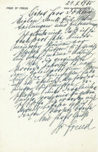 névroses de l’enfance pouvaient protéger contre la psychose ; et ce n’est certainement pas son avis. Et il confirme son refus de donner une préface au livre sur Poe de la Princesse… [Il s’agit du livre de Marie Bonaparte (1882-1962) sur Edgar Poe : Edgar Poe, sa vie, son œuvre : étude psychanalytique (1933, traduction allemande en 1934 par Fritz Lehner, Internationaler Psychoanalytischer Verlag).]{CR}« Vielen Dank für Mitteilungen und Zusendung, Ich glaube nicht daß ich je geäußert habe, Kinderneurosen können vor Psychose schützen. Es ist gewiß auch nicht meine Ansicht. Was die gewünchste Vorrede betrifft – nach eine Geleitwort zum Poe-Buch der Prinzessin habe ich als ähnliche Anforderungen. sich haüften beschlossen, nichts dergleichen mehr von mir zu geben. Ich hoffe Sie werden nicht darauf bestehen, daß ich diesen Vorsatz breche »...