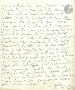 part et signés Uni [ ?] prevenés en touts les gens du pais ; cest un coquin, qui vient de faire cent excroqueries sur le pavé de Paris, avec une gueuse des rues dont il sest amouraché, il pouroit peutetre tourner vers nos cotés et abuser du credit quil y avoit pour faire quelque tour de son metier ». Il est dans l’embarras « par toutes les affaires que me donne ce vilain drôle la heureusement que rien ne me retombera sur le corps »…
