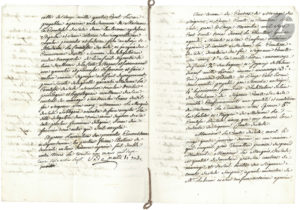 Donatien-Alphonse-François, marquis de SADE. P.S. « Sade », cosignée par sa mère « Maillé de Sade », 31 mars 1767 ; cahier in-4 de 8 pages.{CR}Conventions entre le marquis de Sade et sa mère, après la mort du comte de Sade.{CR}Le...
