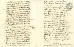 bonne heure, au moins pour diné c’est à dire à trois heures ; vous m’obligerez d’observer cette meme coutume toutes les fois que vous viendrez nous voir cet hiver ; en voici la raison. Nous sommes décidés par mil raisons à voir très peu de monde cet hiver. Il en résulte que je passe la soirée dans mon cabinet, et que md [madame] avec ses femmes s’occupent dans une chambre voisine jusqu’à l’heure du couché moyen en quoi à l’entrée de la nuit, le château se trouve irrémissiblement fermé feu éteint plus de cuisine et souvent plus de provision. Conséquament c’est vraiment nous déranger que de ne pas arriver pour l’heure du diner et nous déranger de toute manière. Nous vous connoissons trop honête pour ne pas vous soumetre à cette petite gene, que nous chercherons d’autant moins à reformer en votre faveur, qu’elle nous fait gagner deux ou trois heures de plus du plaisir d’être avec vous ».{CR}Suit la minute d’une lettre concernant l’abonnement de la marquise de Sade à une gazette.{CR}Enfin Sade évoque une dispute domestique à propos d’un livre égaré, qui « vient d’exciter une altercation carteronique, et consequament gothonique qui vise à de grandes suites car on veut son congé. Votre présence est encor ici nécessaire pour calmer tout cela »…{CR}Correspondance (Lély), XLV.