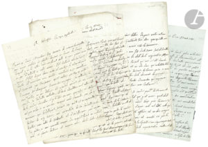 l’abbé de Sade ; 14 pages in-4, adresses.{CR}Echauffour 30 septembre [1768 ?], à l’abbé de Sade en son château de Saumane. Elle donne à l’abbé de bonnes nouvelles de son neveu. « S’il continue a se conduire comme il fait depuis deux mois il meritera le retour de vos bontés. Il recouvrera mon amitié ». Il a désiré être avec sa femme et a promis de quitter sa nouvelle maîtresse »… Etc.{CR}9 mars [1775]. Au sujet de son gendre et des mesures à prendre pour étouffer l’affaire de Lyon, notamment d’une femme qu’il faut mettre dans un couvent pour qu’elle ne parle pas ; des soucis financiers : « c’est Mr de S. qui depuis 10 ans petit à petit s’est ruiné lui-même. […] Il y a trop d’aigreur entre les proches de M. de S. et ma fille pour espérer qu’ils puissent jamais marcher d’accord. […] Ils nous font l’honneur de nous prendre pour des imbéciles aparament. Quoi qu’il en soit je suivrai avec activité tout ce qu’il faudra faire pour la réhabilitation de l’honneur et la conservation des biens »…{CR}Paris 14 avril 1778. Sur les mesures à prendre en secret avec la police pour joindre les filles de Marseille. Elle plaint sa fille, mais elle doit la tromper pour sauver ses intérêts et ceux de ses enfants.{CR}Au château de la Verrière 8 juin [1778]. Elle a prévenu Sade de son prochain transfert à Aix, seul parti à prendre « pour tirer M. de S. et les siens de ce fatal jugement ». Sa vie et son honneur ne courent aucun risque, mais le ministre en sait trop long pour que Sade puisse « compter que sa justification soit suivie de sa liberté »…{CR}Paris 20 mars 1781. Au sujet du « petit chevalier » qui va partir pour Malte. Elle demande une attestation de la sénéchaussée de Forcalquier disant « que la Marquise de Sade étoit encor administratrice des biens de son mari »…