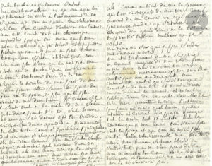 emprisonné à Vincennes depuis le 7 septembre. Il écrit à sa femme cette lettre de jalousie, l’accusant de le tromper avec son ancien secrétaire Lefèvre.]{CR}« Ah ! comme on vient de me le prouver, que lon se moquait de ma vie, comme on vient de me convaincre que je nai plus personne au monde qui sinteresse a moi ah grand dieu grand dieu ne le voila que trop verifié laffreux malheur que je redoutois [...] Vous etes linstrument de mon supplice or, comment imaginer de vous faire jouer un role comme celui la sans vous rendre extremement malheureuse si vous avies de lamitié pour moi, il a donc fallu vous lenlever cette amitié qui faisoit lunique consolation de ma vie, et on ny a reussi en vous donnant un amant. Et voila la politique odieuse des execrables conseillers de votre mere, permettre le crime, lauthoriser pour punir un mal, quelle horreur, quelle infamie, et comment est il possible quavec toute la vertu, toute lhonneteté, toute la candeur que je vous connois vous nayies pas senti le piege et que vous ny ayies pas resisté. Helas votre execrable mere ma donc tout enlevé, biens, honneur, fortune, liberté, je souffrois tout, je ne me serois plaint de rien mais marracher ton coeur, oh, ma chere et divine amie, oh lancienne amie de mon ame, non non je ny survivrai pas ».{CR}Sade a percé l’« odieuse enigme le jour de ma sortie est le 7 fevrier ou 82 ou 84 » ; il fait une laborieuse démonstration, remarquant que le 7 février on fête Saint Amand, « et comme dans fevrier on trouve fevre », pour conclure « que ma sortie etant au bout de 5 ans (ou 57 mois) le jour de St Amand 7 fevrier, Le Fevre lié au 7 et au 5 etoit votre amant. [...] Je veux bien ignorer ma sortie ne jamais lenvisager sil le faut, mais je ne veux pas perdre votre cœur. En un mot je demande a vous voir avec la plus vive instance, il y va de ma vie [...] ne me prouves pas que vous maves enlevé jusquà votre pitié. Jen suis digne, puisque je pleure mes fautes que je men repends et que je ne desire et la liberté et la vie, que pour reparer touts mes torts, et faire encor (sil mest possible, car cela ne lest plus, si vous ayes changé) faire encor le bonheur de ta vie [...] il me reste encor un titre precieux pres de toi, que lunivers entier ne scauroit menlever — je suis le pere de tes enfants ; eh bien que ce soit en leur nom que tu te laisses flechir, si je te deplais – je mourrai – ji consens, je te delivrerai de moi – mais laisse moi pleurer avant un instant a tes pieds, laisse moi embrasser encor une fois tes genoux, entendre mon arrêt de ta bouche et je mourrai content. [...] veut-on la moitié de ma fortune je la donne, pour te voir une seule heure [...] Oh ! mon dieu comme vous me faites souffrir et quel recherche, quel noirceur dans vos tourments, ah ! cest comme cela que lon aigrit et desespere une ame, mais ce nest pas ainsi quon la ramene ; au nom de dieu viens me voir une heure – ou je ne reponds plus de ma vie ».{CR}Correspondance (Lély), CXXXII.
