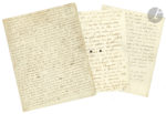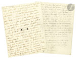 la signature).{CR}Longue lettre à son avocat sur sa libération de la Bastille, le 14 juillet et la perte de ses manuscrits, et le divorce demandé par sa femme.{CR}Il expose à son « cher avocat » la conduite « très ridicule » de Mme de Sade. Il éprouvait de l’inquiétude et du chagrin quand elle venait le voir à la Bastille : « le besoin que j’avais d’elle me faisait dissimuler mais tout en elle m’allarmait, je distinguais clairement des instigations de confesseur et a dire vrai je voyais bien que ma liberté deviendrait l’époque d’une séparation.{CR}Le 4 juillet a l’occasion d’un peu de train que je fis à la Bastille pour des mécontentemens que l’on m’y donnait, le gouverneur se plaignit au ministre, j’échauffais disait-on par ma fenêtre l’esprit du peuple, je l’assemblois sous cette fenêtre, je l’avertissais des préparatifs qui se faisaient a la Bastille, je l’exhortais a venir jetter bas ce monument d’horreur... tout cela était vrai... l’on me fit transférer au couvent des frères de la Charité de Charenton, ou ces scelerats de Montreuil eurent la cruauté de me laisser languir neuf mois au milieu des fols et des epileptiques à qui seuls est consacrée cette maison, un peu plus de liberté là qu’aillieurs me mit à même pourtant de découvrir que je n’étais plus détenu que par l’avarice de ces moines, et quil me suffisait de leur dire imperieusement que je voulois sortir pour quils m’ouvrissent la porte, mes enfants et moi nous le fimes, je devins libre, et cela bien avant la sanction du roi relative aux lettres de cachet […] en sortant de la Bastille la nuit du 3 au 4 juillet suivant les anciens usages du despotisme ministériel, on ne me laissa rien emporter, j’en sortis nud comme la main, et tous mes effets – c’est-a dire pour plus de cent louis de meubles, d’habits ou de linges, six cent volumes dont quelqu’uns fort chers et ce qui est irreparable quinze volumes de mes ouvrages manuscrits prets a passer chés l’imprimeur, tous ces effets dis je furent mis sous le scellé du commissaire de la bastille et madame de Sade dina, fut a la garderobe, se confessa, et s’endormit. Enfin le 14 juillet au matin elle s’imagina quil était temps de faire ouvrir ce scellé, et de m’envoiyer mes effets... a moi toujours nud (heureusement quil faisait chaud) et toujours vegetant parmi les fols. Malheureusement le jour quelle prit pour se réveiller de sa létargie était le même ou le peuple se porta en foule a la Bastille ou il en assassina le gouverneur et tous les officiers, moyen en quoi il n’y eut pas moyen d’entrer et tous mes effets furent pillés ». La conduite de sa femme est atroce ; elle a laissé piller « des manuscrits que je pleure tous les jours en larmes de sang... des ouvrages qui m’auraient fait une réputation dans la littérature... des ouvrages qui m’auraient beaucoup rapporté... qui m’avaient consolé dans ma retraite et qui en adoucissant ma solitude m’avaient fait dire... au moins je n’aurai pas perdu mon temps. […] Je retrouve pourtant quelque chose dans les districts ou furent jettés les papiers de la Bastille, mais rien d’important... des misères et pas un seul ouvrage un peu conséquent. Oh j’y renonce j’y renonce... juste Dieu ! C’est le plus grand malheur que peut me reserver le ciel... et pour adoucir cette plaiye, savés-vous ce qu’a fait l’honnête et sensible Md de Sade, elle avait aussi beaucoup d’ouvrages a moi... de manuscrits passés clandestinement dans ses visites ; elle me les refuse... elle dit que dans la crainte que ces ouvrages (trop fermement écrit) ne me fissent tort, a l’époque de la revolution elle les a confié a des personnes qui en ont brulé une partie... le sang bouillonne en entendant de telles réponses »... De plus, la « céleste dame […] a peine m’a-telle su dehors, qu’elle m’a fait signifier un acte de séparation [...] Toutes les infamies qui ont été dites contre moi dans les cabarets, dans les corps de garde, compilées dans les almanachs, dans les plats journaux, forment la base de ce beau mémoire, les indécences les plus atroces y sont scandaleusement inventées... calomnieusement rapportées... C’est un monument d’horreurs, de mensonges et de balourdises, aussi grossier, aussi obscur, que platement et betement écrit »… Il ne veut pas répondre à « ce monument d’impudences », et il sera « condamné par défaut... séparé de corps et de bien »... Mais il espère ne pas être ruiné, et que ses affaires de Provence lui donneront de quoi vivre…{CR}Il parle ensuite de son logement chez « une dame charmante » (« elle a 40 ans, je joins cette dernière circonstance pour vous faire voir qu’avec moi, qui en ai 50 – ce qui fait bien 90 à nous deux, il ne peut y avoir de danger »), de ses enfants, des spectacles parisiens…{CR}Correspondance (Lély), CXCIX (extraits).{CR}On joint 2 lettres de Sade au même : – L.A.S., [fin octobre1790] (1 p. in-4, adresse), réclamant de l’argent pour finir son année ; – L.A., 4 décembre [1790] (1 p. in-4, adresse), concernant l’argent qu’il attend et l’envoi d’une caisse, et sur la situation politique : « La faction orleanoise s’augmente chaqu jour ; le clergé fait des assemblées illicites, et tumultueuses chez le cardinal de La Rochfoucaut ; et l’on vient de distribuer a nos gardes nationaux des cartouches et balles. Vous voiyez que tout ceci annonce du mouvement »…