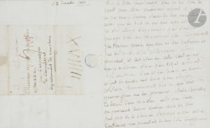 Donatien-Alphonse-François, marquis de SADE. L.A.S., [Charenton] 22 décembre 1810, à François Ripert à Mazan ; 3 pages in-4, adresse (encadrée).{CR}Il se plaint de ne pas avoir de ses nouvelles, et a « un besoin urgent de quatre cent...