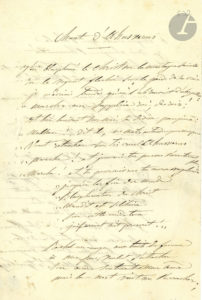 Louise COLET (1810-1876). Poème autographe signé « Louise Colet-Révoil », Chant d’Ahasverus, [1836] ; 2 pages et demie in-8 à son chiffre.{CR}Poème de 42 vers inspiré par le personnage du Juif errant, et recueilli dans Penserosa,...