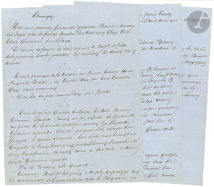 Alexandre DUMAS père (1802-1870). Manuscrit autographe signé « A.D. », Chronique, [vers 1862] ; 2 pages et demie in-4.{CR}Faits divers de Naples, publiés en italien, sous le titre Cronaca, dans son journal napolitain...