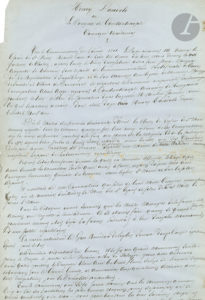 Alexandre DUMAS père (1802-1870). Manuscrit autographe, Henri Dandolo ou la Conquête de Constantinople, chronique vénitienne ; 38 pages in-fol. (quelques bords effrangés, déchirures à la dernière page avec manques).{CR}Récit historique qui...