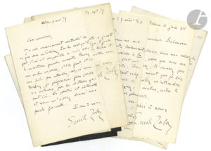 Émile ZOLA. 23 L.A.S., 1879-1893, à Henri Baboneau, peintre verrier ; environ 28 pages la plupart in-8, quelques enveloppes.{CR}Correspondance au maître-verrier qui a réalisé les vitraux de la maison de Médan. Baboneau avait son atelier à...