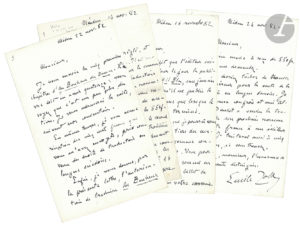 Émile ZOLA. 4 L.A.S., Médan 14-24 novembre 1882, à un agent littéraire ; 6 pages in-8.{CR}Au sujet de la traduction en suédois d’Au Bonheur des Dames.{CR}14 novembre. Il veut bien céder pour 550 F « le droit de traduction en langue...