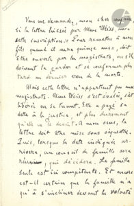 Émile ZOLA. L.A.S., [1er juin ? 1891], à un « cher confrère » [le journaliste Montguyon] ; 1 page et demie in-8.{CR}Lettre ouverte au sujet d’une affaire criminelle, publiée dans Le Figaro du 3 juin 1891.{CR}[Jeanne Weiss avait...