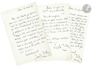assaut des reporters ; et, si j’ai quelque chose d’intéressant à dire, je préférerais le dire au Figaro. Voyez si cela vous paraît devoir donner cent cinquante lignes curieuses pour vos lecteurs »…{CR}Paris 16 mai 1893 : « voici le discours [À la jeunesse]. Envoyez-moi les épreuves demain, et je les corrigerai tout de suite. Il est entendu que je me suis engagé à ne le donner à aucun autre journal, pas même des extraits, mais à la condition qu’il paraîtra en tête du Figaro, vendredi matin. Rédigez la petite note qui devra le précédera »...{CR}Paris 16 septembre 1893. « Veuillez me faire envoyer tout de suite un nouvel exemplaire des épreuves de mon article sur l’anonymat. J’en ai besoin pour l’envoyer à Vienne à la Nouvelle Presse Libre »...{CR}[Médan 29 août 1894], envoi d’épreuves corrigées.{CR}Paris 29 janvier 1900. « Jacques Dhur, qui a fait sur mon père un livre excellent, doit vous porter un article que je serais heureux de voir paraître dans Le Figaro. Mais il se peut que de Rodays ne veuille pas s’engager, et c’est pourquoi je préfère m’adresser à vous, pour qu’il n’ait pas l’ennui de me refuser quelque chose. Je sais que vous ferez ce que vous pourrez, et je vous remercie mille fois à l’avance »...{CR}On joint un télégramme de Zola à Calmette, 22 août (contrecollé) : il ne peut « démentir Mac Mahon aurait du passer devant un conseil de guerre si son incapacité avait suffi à l’en rendre justiciable mais son cas était différent de celui de Bazaine »…