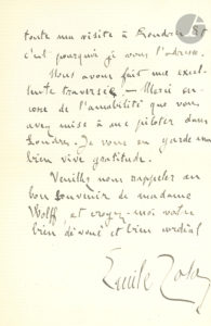 Émile ZOLA. L.A.S., Paris 3 octobre 1893, à un « cher confrère » [Lucien Wolff, du Daily Graphic de Londres] ; 2 pages in-8.{CR}Après le Congrès de la Presse à Londres.{CR}Il lui envoie « un article paru ce soir dans le journal Paris,...