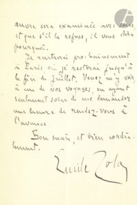 Émile ZOLA. L.A.S., Médan 18 avril 1900 ; 2 pages in-8.{CR}Il est « à la campagne, un peu souffrant, et je crois que le mieux est que vous portiez tout de suite votre manuscrit à Fasquelle. Vous le trouverez le matin vers onze heures […]...