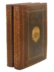 Dos passé, coiffe inférieure restaurée. Traces d'humidité sur le second plat du tome II.
