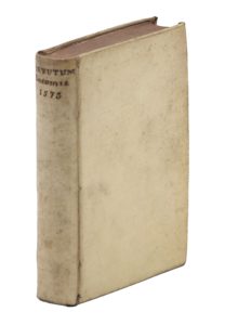 Henri Estienne, 1573. In-16, vélin rigide, dos lisse, tranches jaspées (Reliure du XVIIIe siècle).Unique édition de ce recueil de maximes sur la vertu tirées des poètes et philosophes antiques, imprimé en grec et en latin par Henri II Estienne.