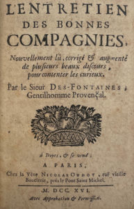 [FACÉTIES] — DESFONTAINES. L'Entretien des bonnes compagnies. Nouvellement lu, corrigé & augmenté de plusieurs beaux discours, pour contenter les curieux.