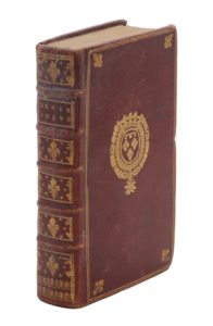 Paris, D’Houry, 1732. In-12, maroquin rouge, double filet doré et fleurs de lis aux angles, armoiries au centre, dos orné de fleurs de lis, tranches dorées (Reliure de l'époque).Unique édition de cette exégèse de l’Apocalypse par l’abbé Genreau, curé de Notre-Dame de Dijon.