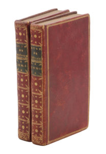 Zurich, Orell, Gessner & Cie, 1768. 2 volumes petit in-8, maroquin rouge, triple filet doré, dos lisse orné, dentelle intérieure, tranches dorées (Reliure de l'époque).Première édition collective en français des œuvres du poète, peintre, graveur, illustrateur et éditeur zurichois Salomon Gessner (1730-1788), traduites de l'allemand par Michael Huber (1727-1804). Elle réunit La Mort d'Abel, Daphnis, La Nuit, les Idylles, Évandre et Alcimne, Éraste, Tableau du Déluge et Le Premier navigateur.