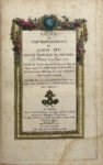 Paris, Vente & Patas, 1775. 3 parties en un volume in-8, veau moucheté, dos orné, tranches rouges (Reliure de l'époque).Édition in-8 parue l'année de l'originale in-4 de ce recueil dont les deux premières parties ont été composées par Nicolas Gobet (1735-1781), garde des archives de Monsieur, et le Journal historique de la cérémonie par l'abbé Pichon.