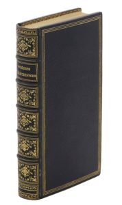 Paris, Pierre Le Petit, 1671. In-12, maroquin bleu nuit, triple filet doré, dos orné, dentelle intérieure, tranches dorées (Reliure de la fin du XIXe siècle).Édition originale, ornée d'un titre-frontispice libellé Poésies chrétiennes.