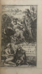 Suivant la copie de Paris. La Haye, Jacob van Ellinckhuysen, 1685. In-12, veau rouge, double encadrement de filets noirs bordés de dentelles à froid, médaillon étoilé au centre estampé à froid, teinté en noir et serti de filets et de pastilles dorés, dos richement orné, coupes décorées, filets intérieurs dorés et dentelle à froid, doublures et gardes de vélin bleu, tranches dorées (Duplanil).Jolie édition hollandaise ornée de douze eaux-fortes, dont un titre-frontispice signé d'Adriaan Schoonebeek, élève de Romeyn de Hooghe, un portrait de Christine de Suède, à qui l'ouvrage est dédié, et 10 figures hors texte non signées, copiées d'après les gravures de François Chauveau qui illustrent l'édition originale in-folio, publiée à Paris en 1654.