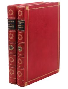 Paris, Blin, s.d. [1786-1792]. 2 volumes in-folio, maroquin rouge, double filet doré et fleurons d'angles, dos orné, dentelle intérieure, tranches jaspées, étuis (Reliure moderne).Édition originale de ce remarquable recueil de gravures en couleurs.
