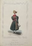 Petit in-folio, demi-maroquin rouge, dos orné, couverture (Reliure du XIXe siècle).Suite complète de 12 planches lithographiées d'après Gustave de Galard en épreuves finement coloriées de costumes bordelais : grisettes, marchande d'huîtres, cadichonne, berger et bergère des Landes.